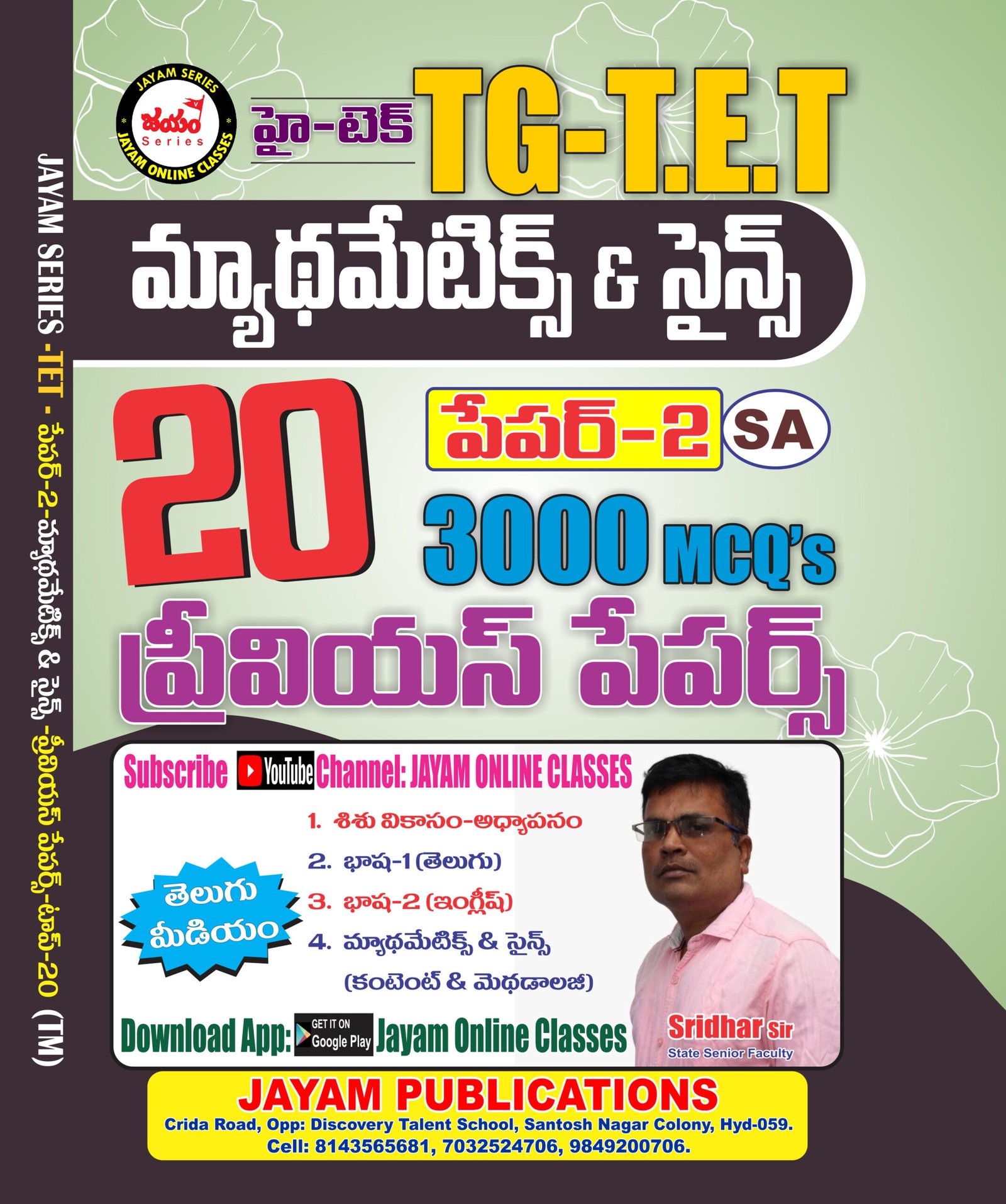 TG-TET Paper 2 (SA) 2025 – 20 Previous Papers | 3000 MCQs | Mathematics & Science Guide | Jayam Publications